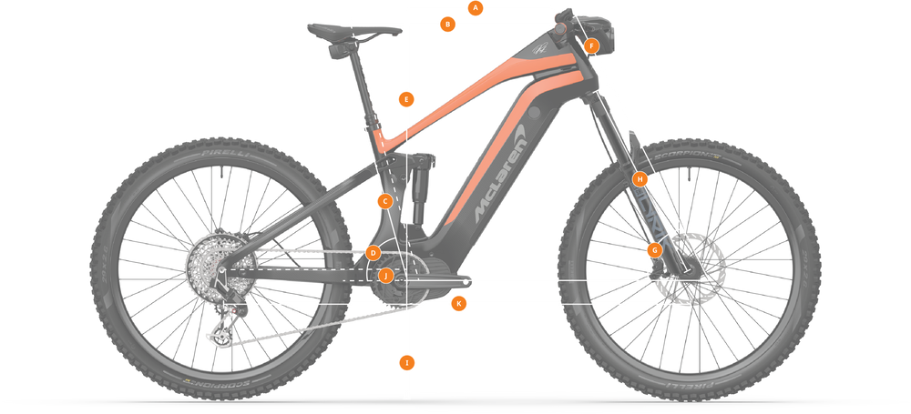 The carbon fiber chassis blends aggressive eMTB handling with the McLaren design language. Stunning to look at and a blast to ride.